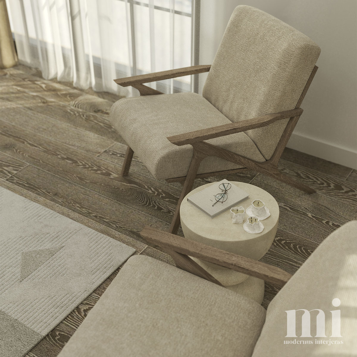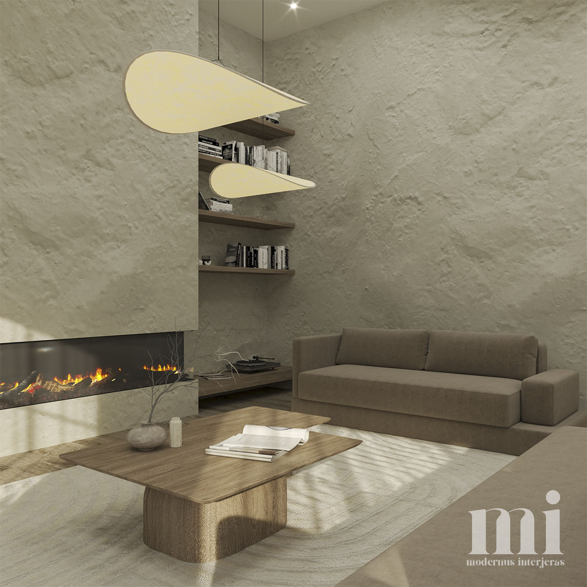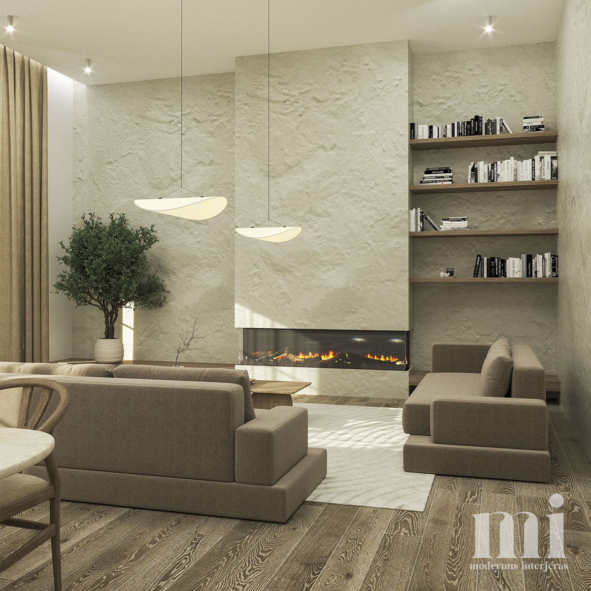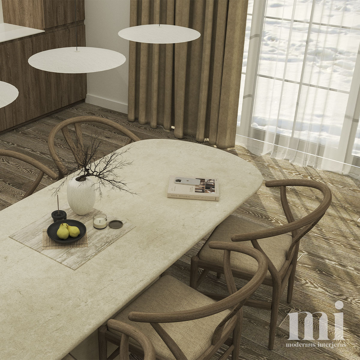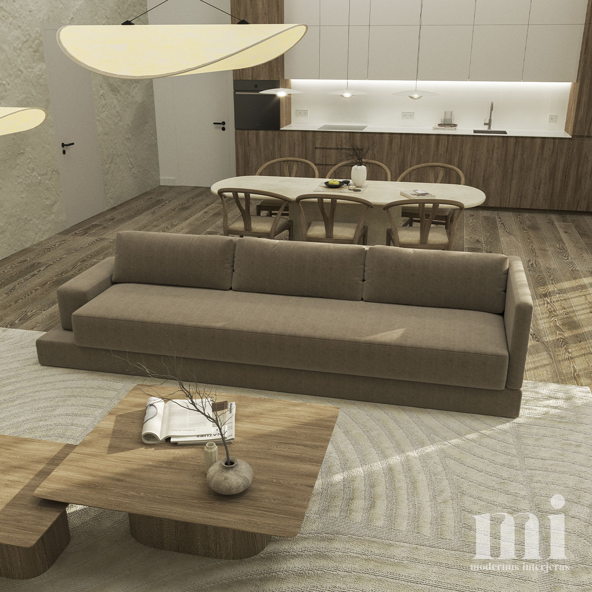 Minimalus ir žemiškas japandi stilius atsispindi projekte – KLN. 3. Tai jaukių skandinaviškų ir unikalių japoniškų elementų visuma. Šio interjero projekto tikslas įgyvendinti klientų savitumą, perteikiant tai per detales. Meilė gamtai ir noras “įnešti” ją į savo namus padiktavo tokių sprendimų kaip akmens sienos, natūralaus medžio tekstūrų ir žemiškų tonų pasirinkimą.