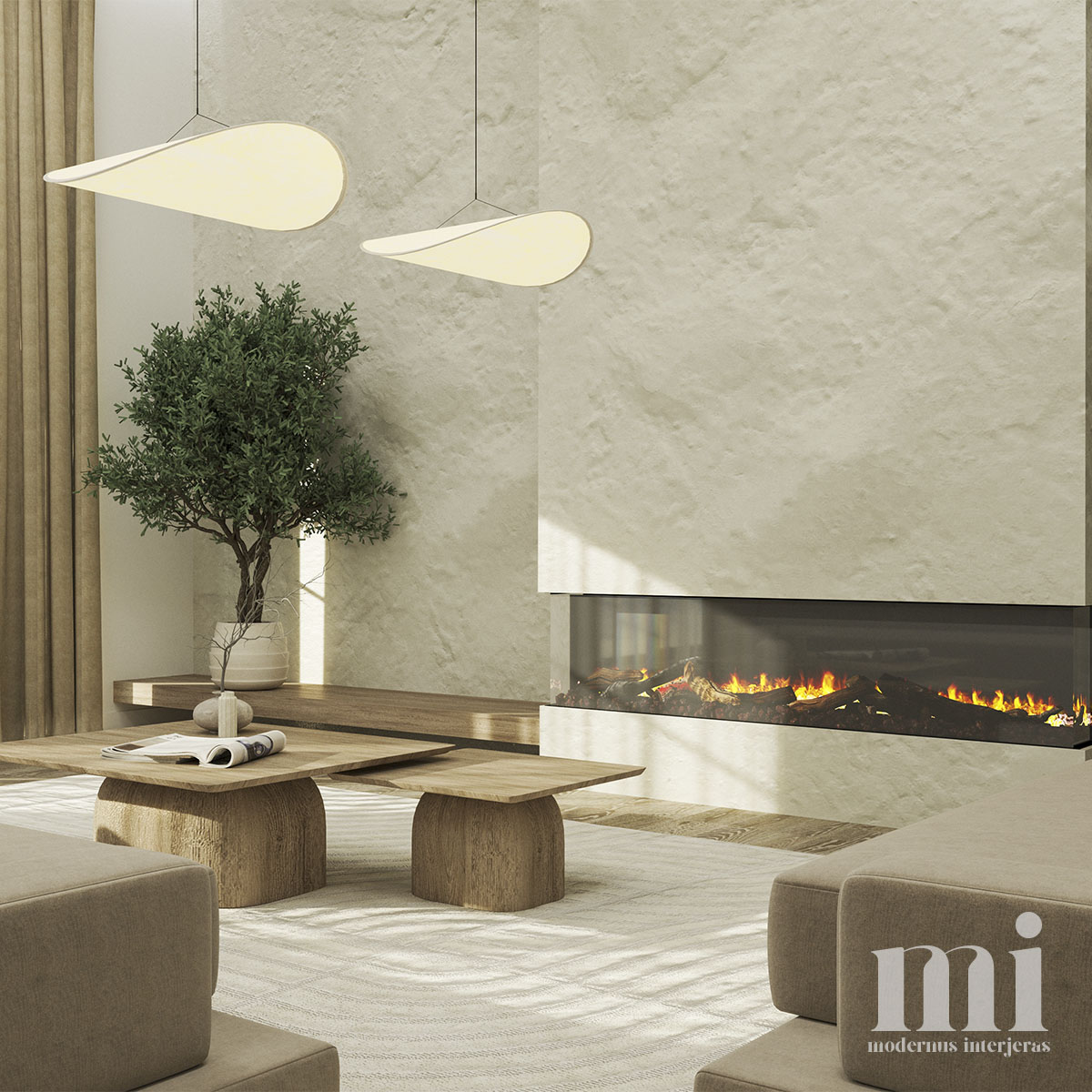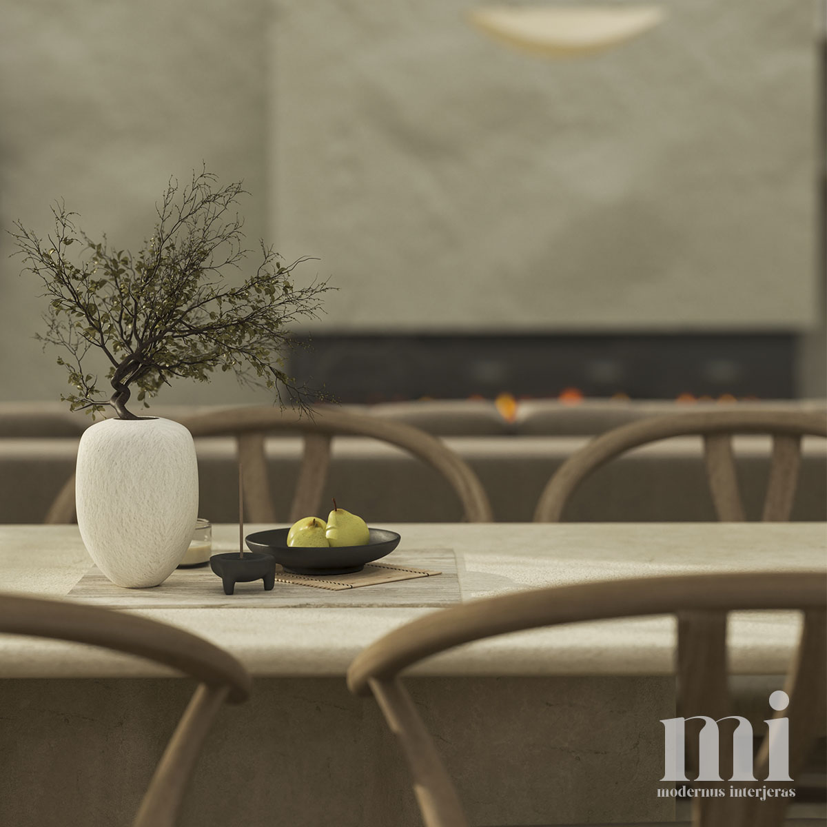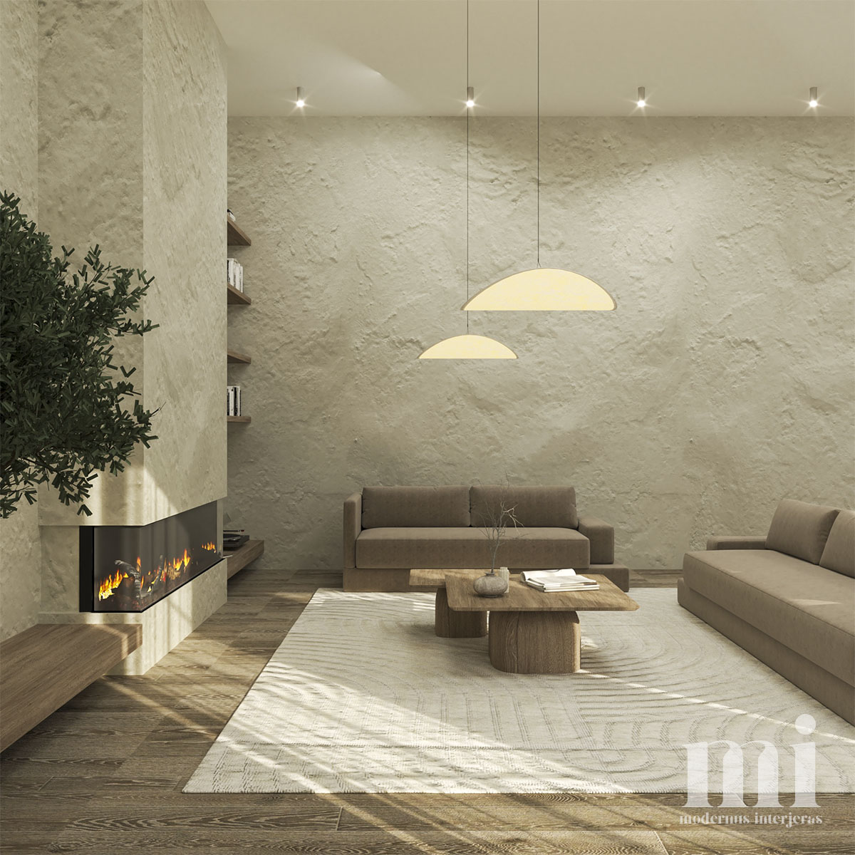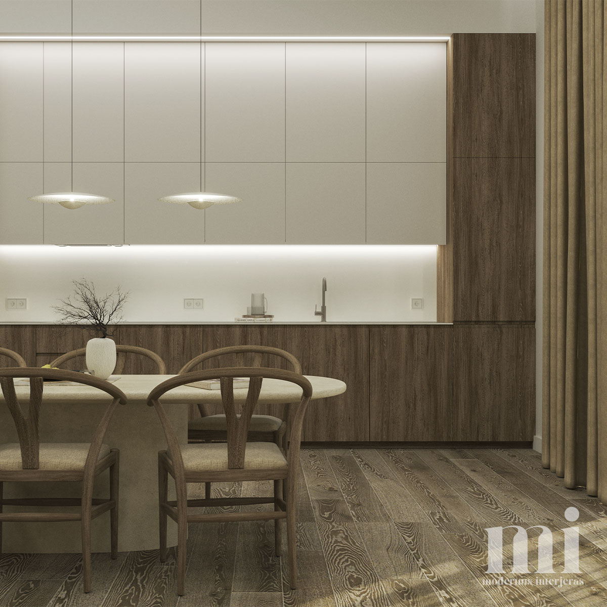 Minimalus ir žemiškas japandi stilius atsispindi projekte – KLN. 3. Tai jaukių skandinaviškų ir unikalių japoniškų elementų visuma. Šio interjero projekto tikslas įgyvendinti klientų savitumą, perteikiant tai per detales. Meilė gamtai ir noras “įnešti” ją į savo namus padiktavo tokių sprendimų kaip akmens sienos, natūralaus medžio tekstūrų ir žemiškų tonų pasirinkimą.