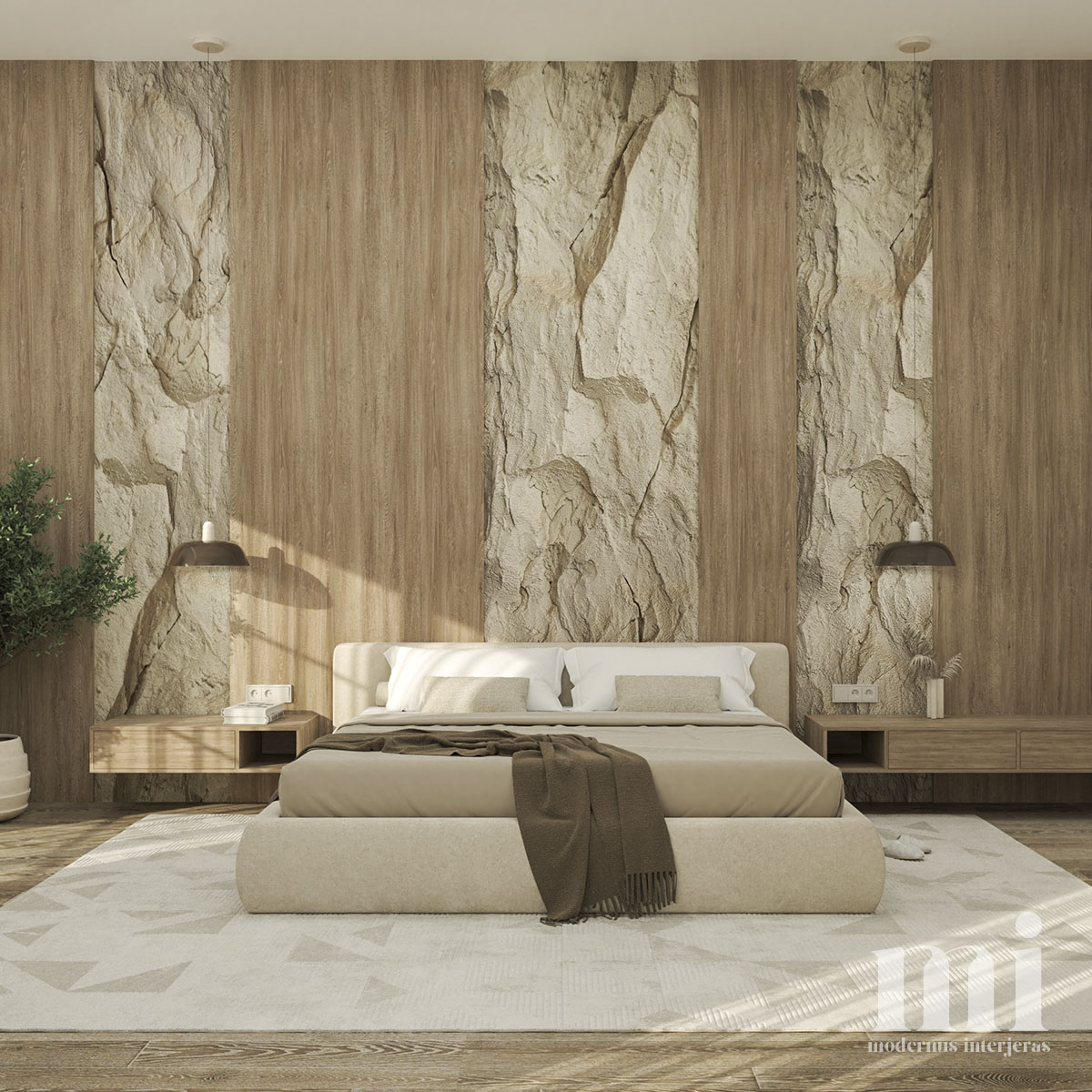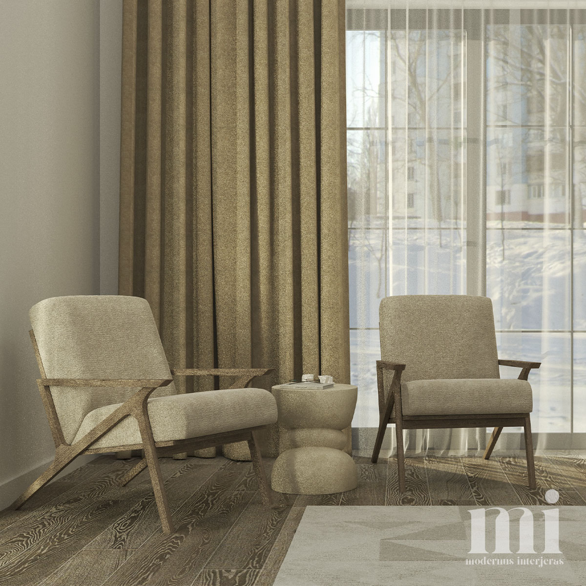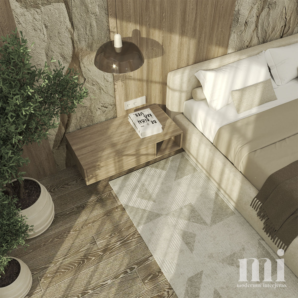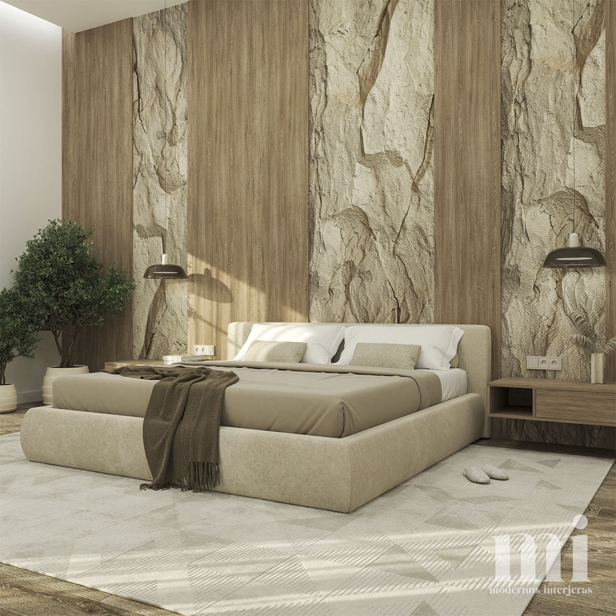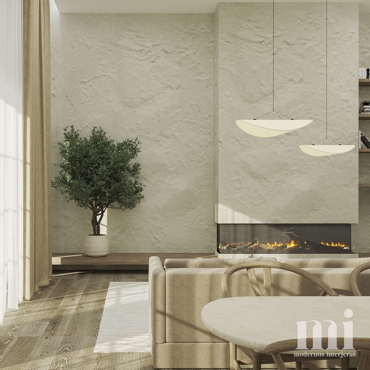 Minimalus ir žemiškas japandi stilius atsispindi projekte – KLN. 3. Tai jaukių skandinaviškų ir unikalių japoniškų elementų visuma. Šio interjero projekto tikslas įgyvendinti klientų savitumą, perteikiant tai per detales. Meilė gamtai ir noras “įnešti” ją į savo namus padiktavo tokių sprendimų kaip akmens sienos, natūralaus medžio tekstūrų ir žemiškų tonų pasirinkimą.