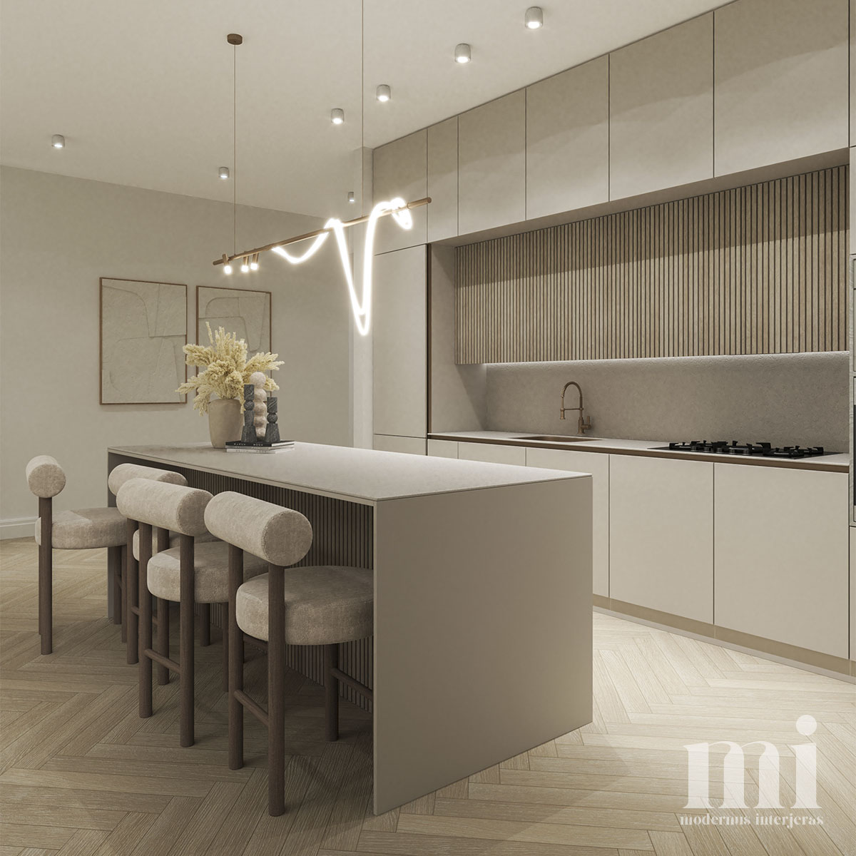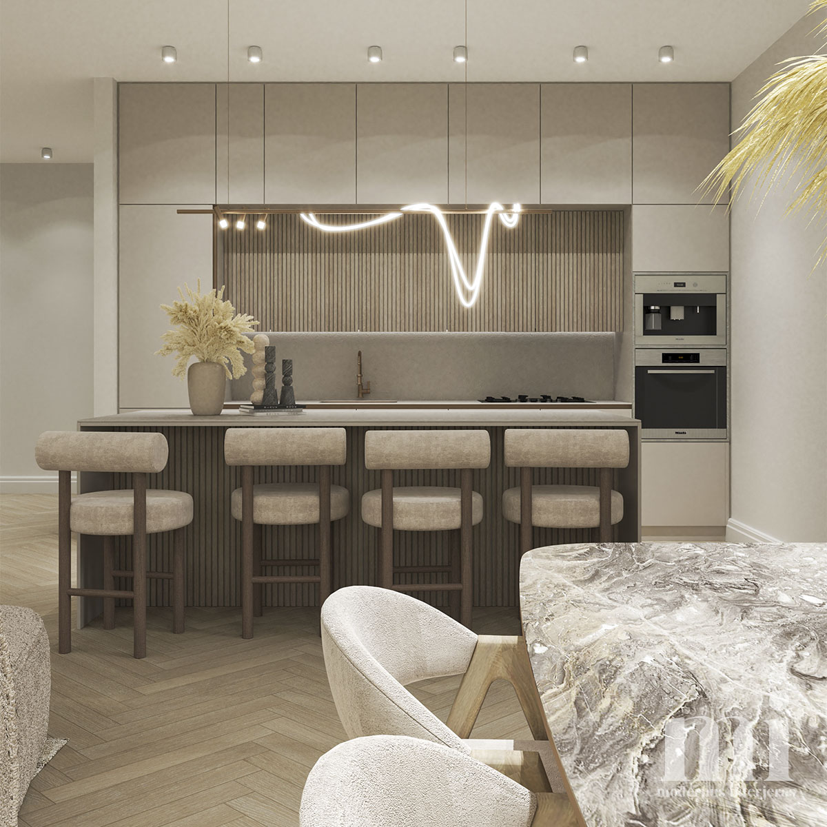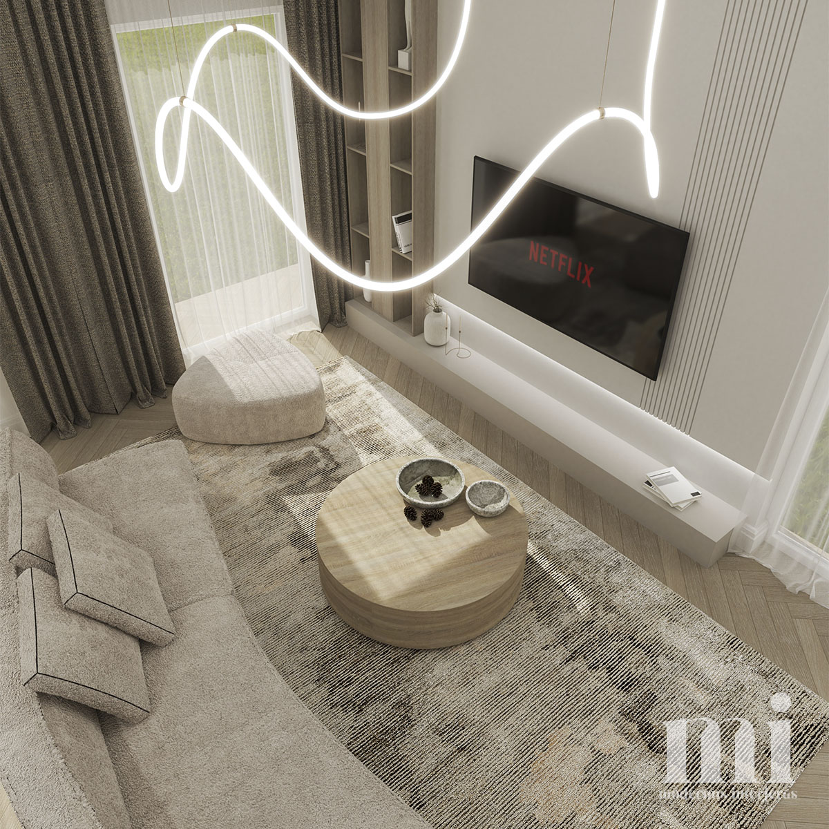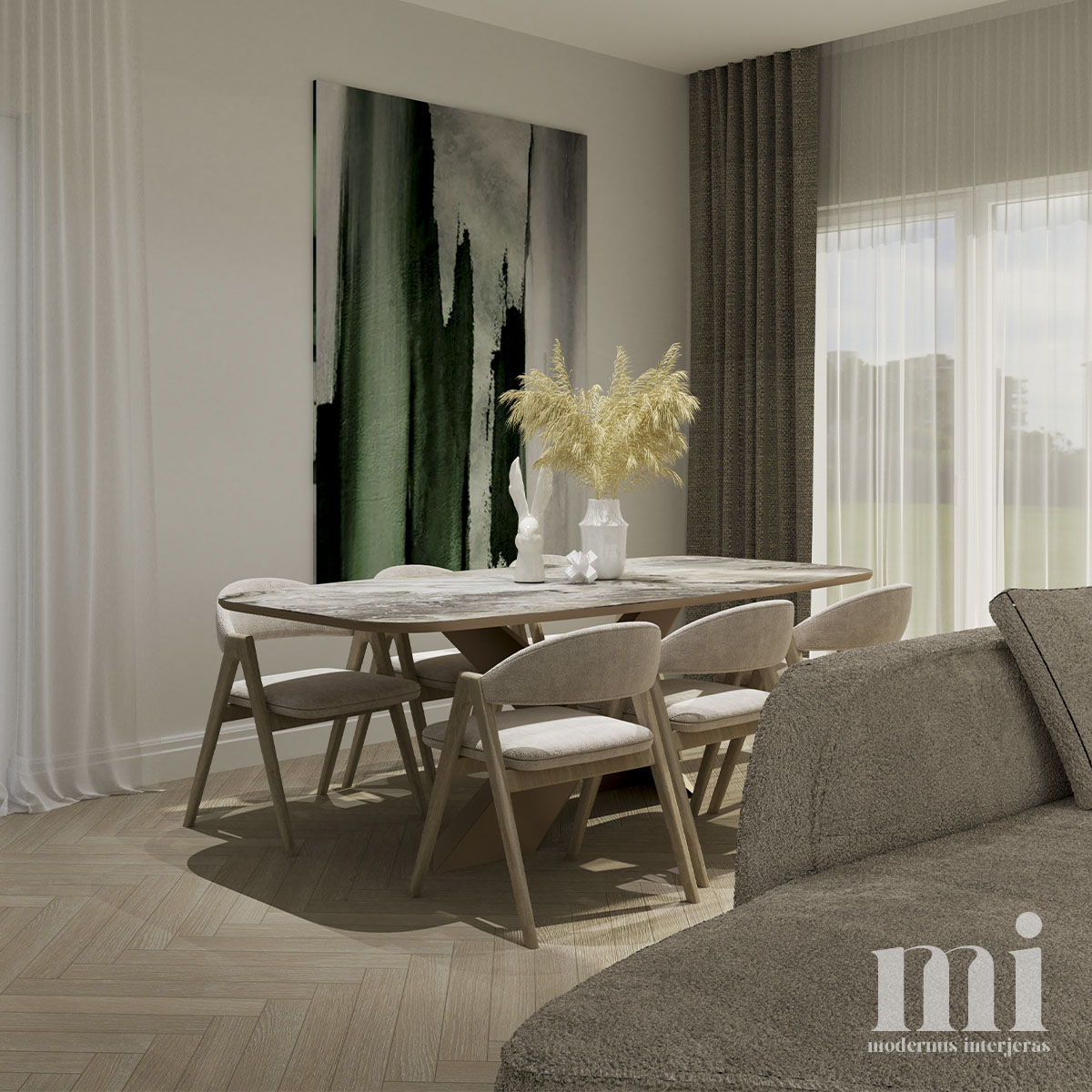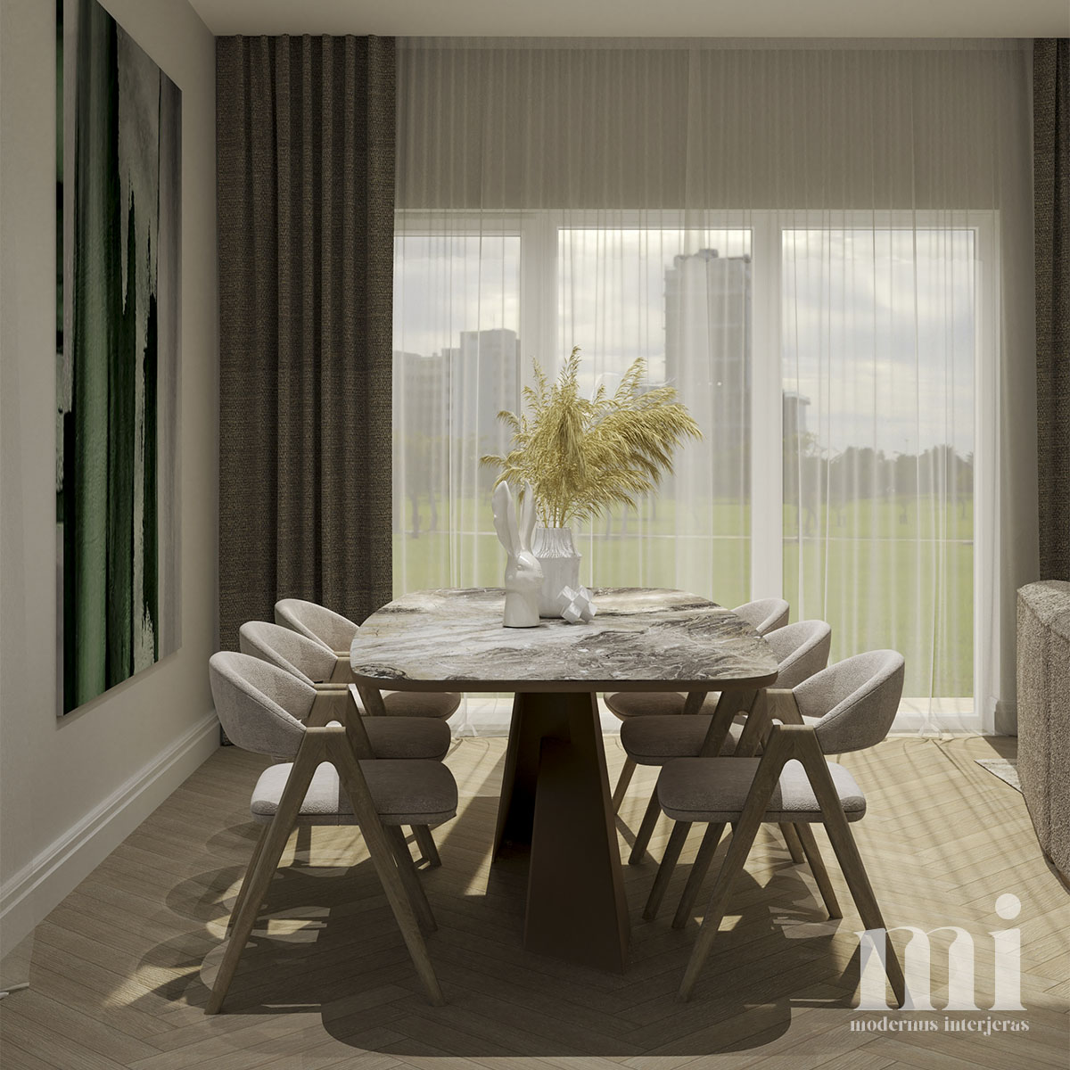 Projekto RM.7 tikslas sukurti modenaus, šiuolaikinio stiliaus jaukius ir šviesius namus. Interjere buvo siekiama išlaikyti lengvumą, estetiškai perteikti žemiškų spalvų paletę. Panaudotos kelios ryškesnės ir tamsesnės detalės, kurios suteikia atsvaros vizualiai bei patraukia akį.